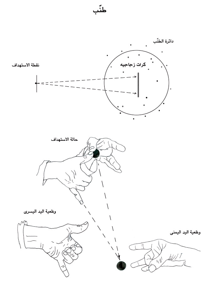 - In the Arab strategy, for shooting the tension comes from the middle finger and the thumb, which makes it stronger than in the Kurdish game where the tension comes from the index and the middle finger.( for the images with both right hand)